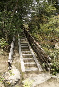 通常三段の石組みで滝を表わしているのに対し、金閣寺は一つの石で表現されています。