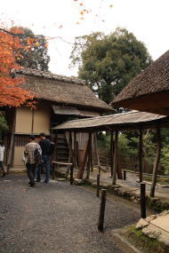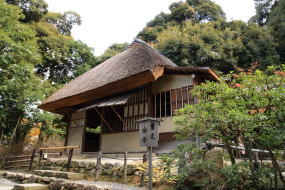 時雨亭は二階建ての茶室。傘亭と屋根の付いた土間廊下でつながれています。
