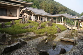 水の流れは平安貴族が杯が流れてくるまでに和歌を詠む“曲水の宴”をイメージしているそうです。